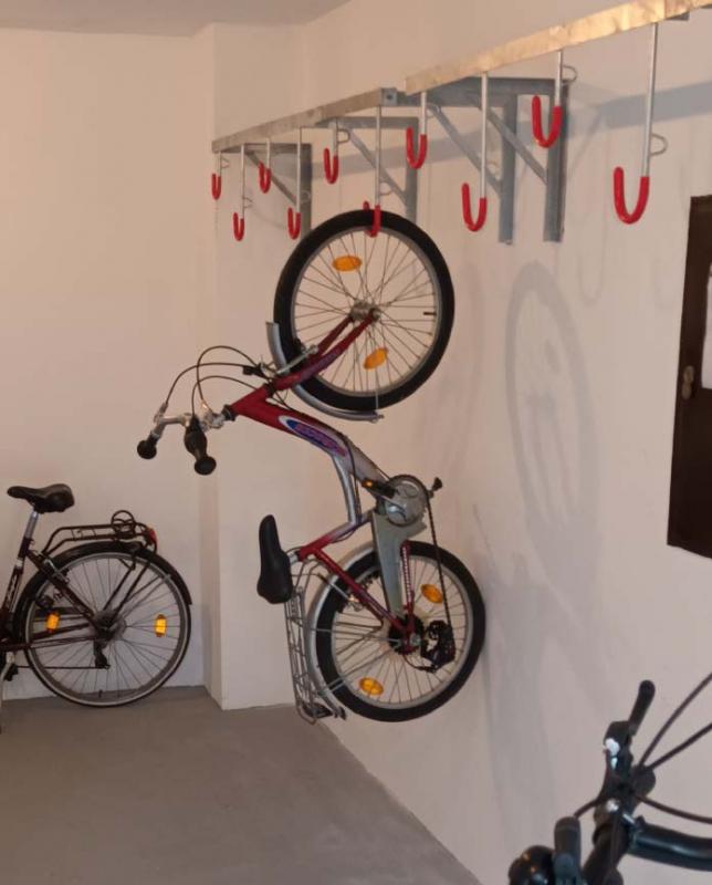 Izmenična postavitev kljuk nizko / visoko, prevlečene z rdečo plastično prevleko za zaščito platišč koles.