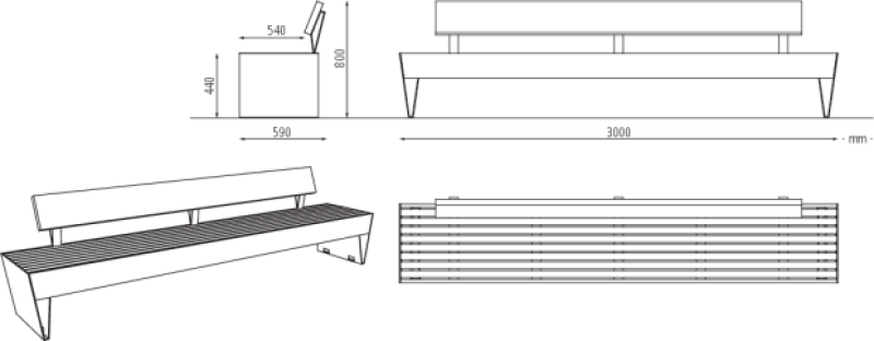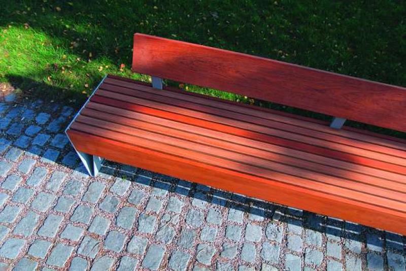 Sedalna površina in hrbtni naslon iz lesenih letev.