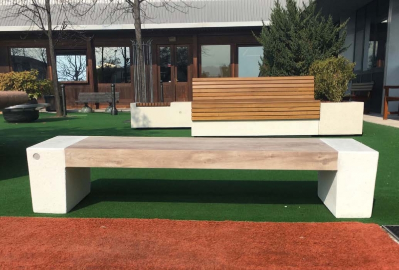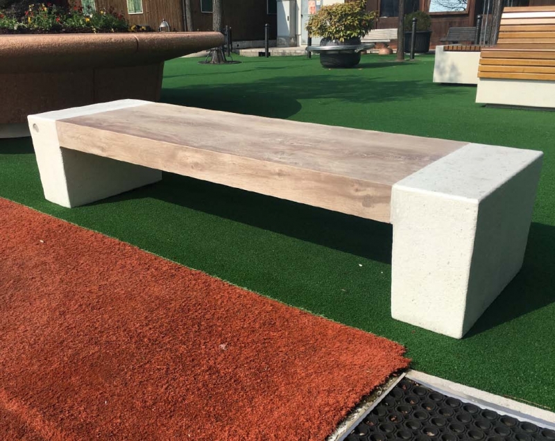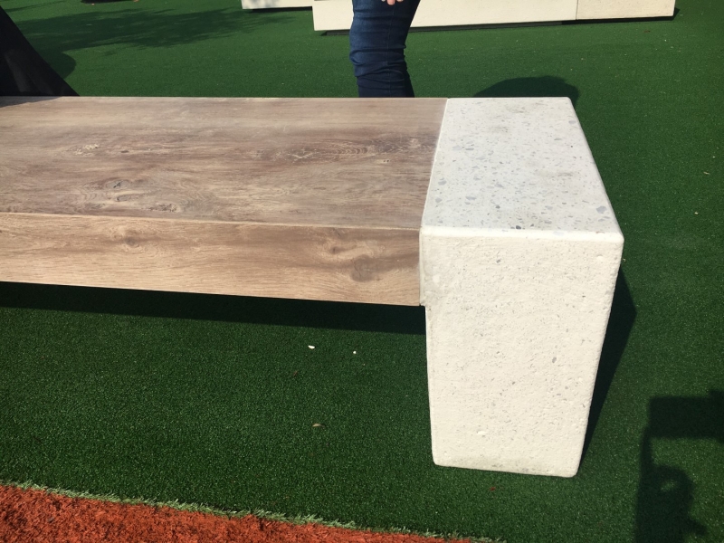 Klop iz betona in s sedalna površina v imitaciji lesa.