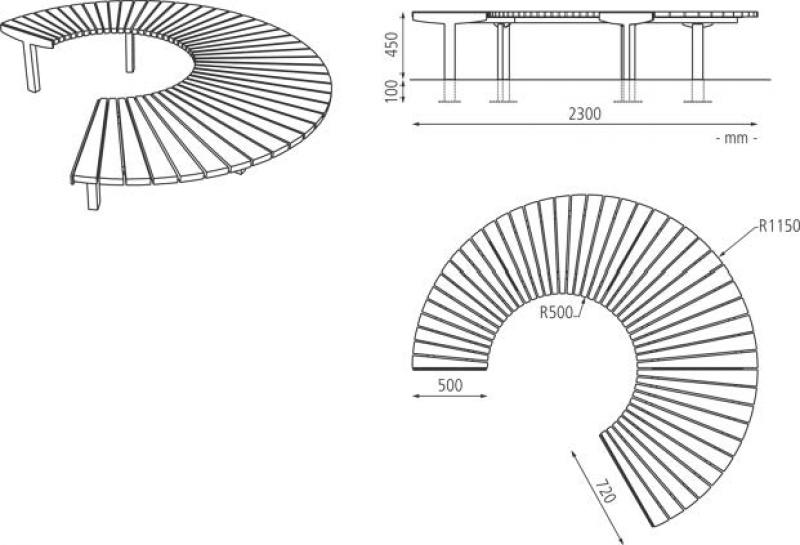 Sedalna površina iz lesenih letev.