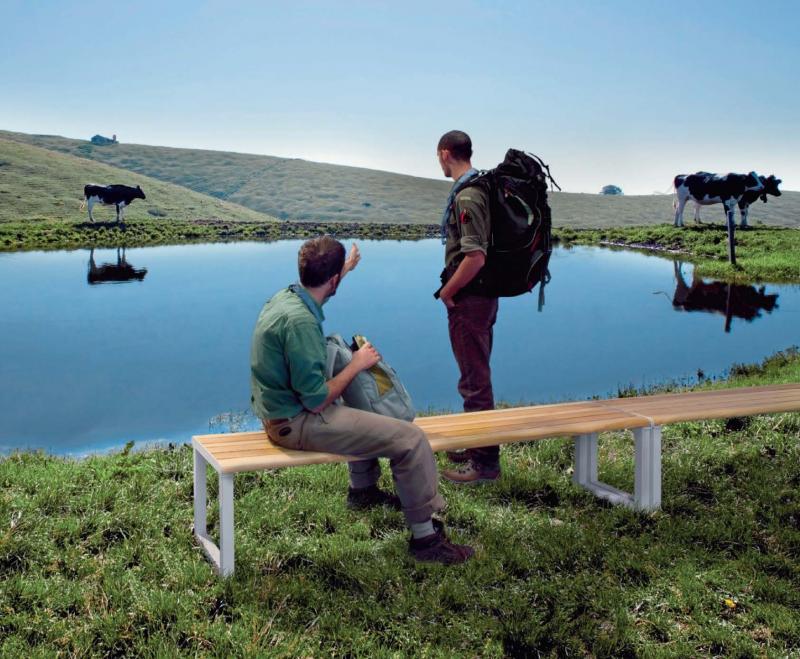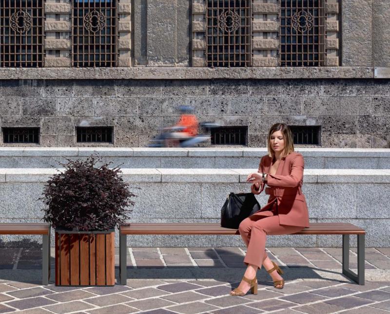 Sedalni del iz aluminijastih letev v imitaciji lesa.