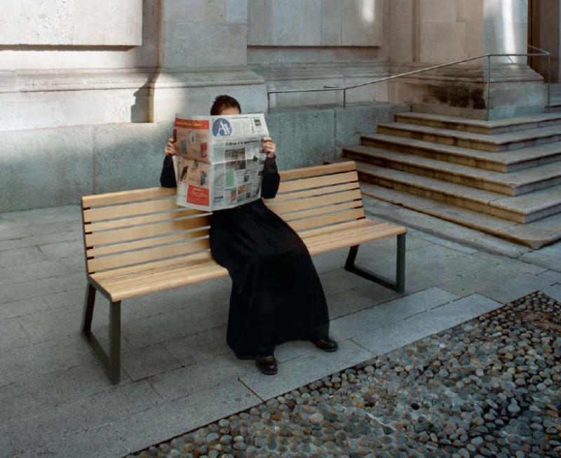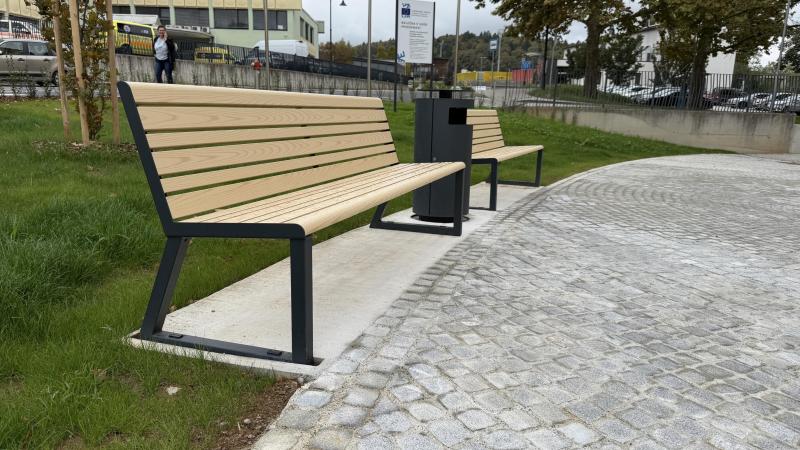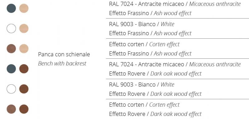Sedalni del in hrbtni naslon iz aluminijastih letev v imitaciji lesa.