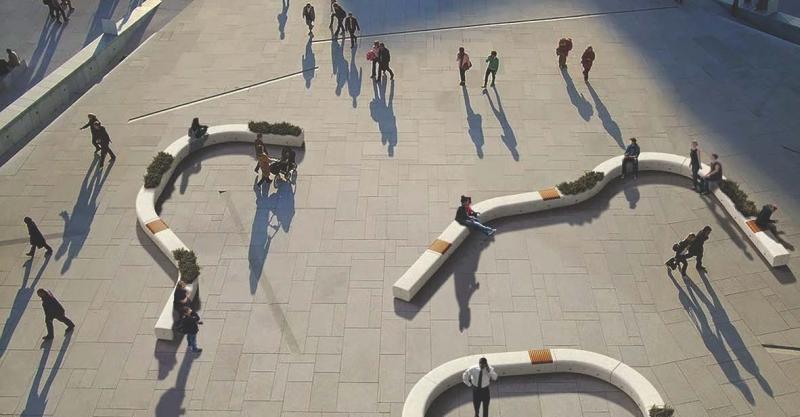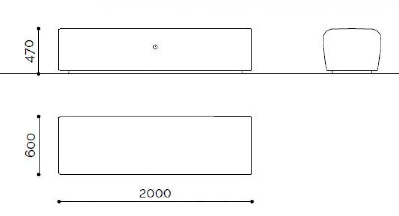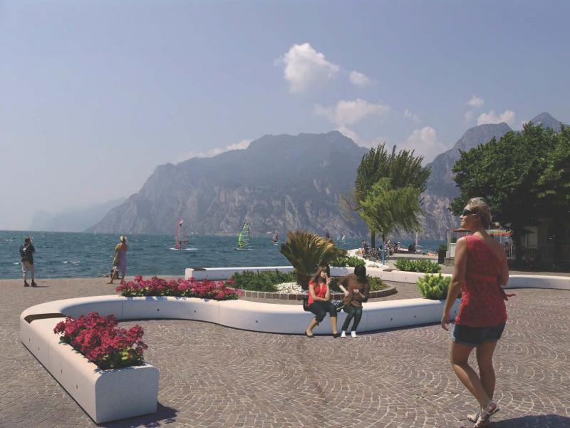 Ukrivljena klop in sedalna površina iz betona - bel granit.