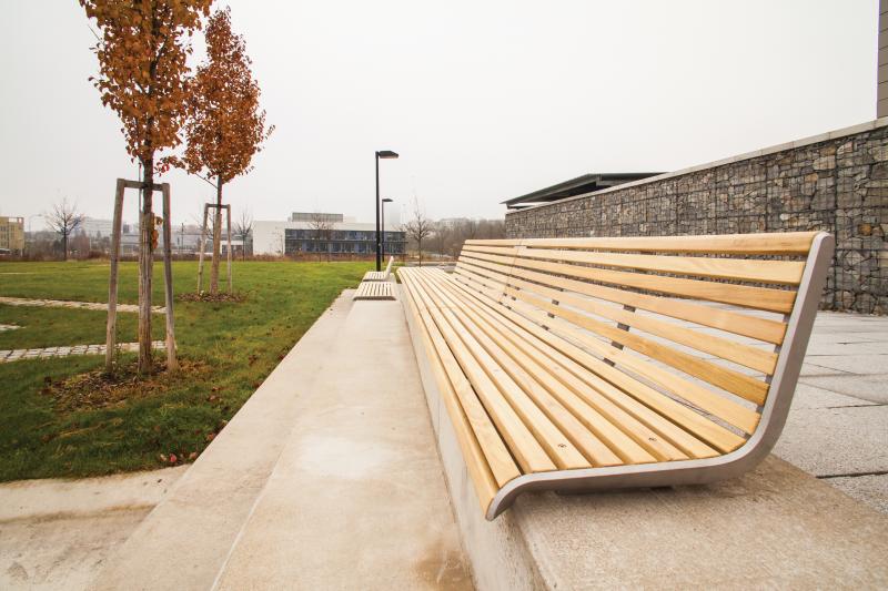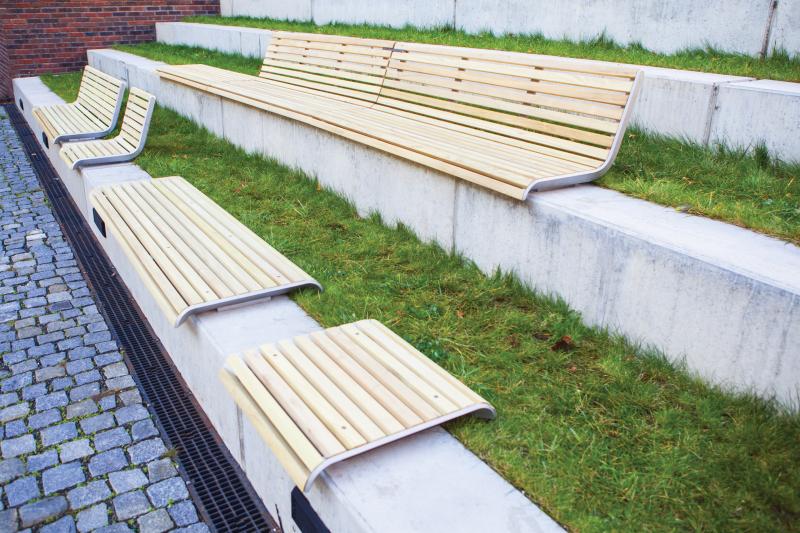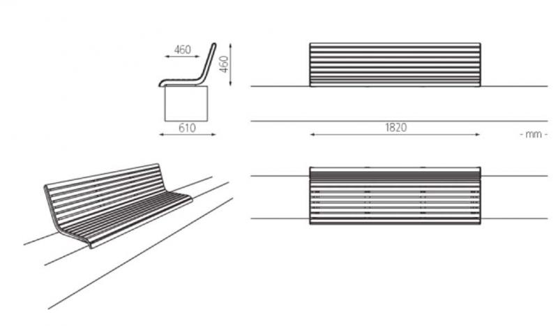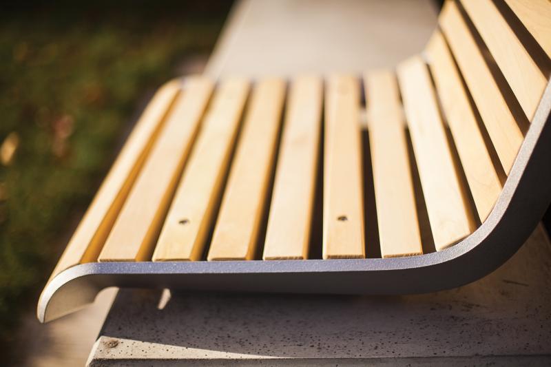 Sedalna površina in hrbtni naslon iz lesenih letev.