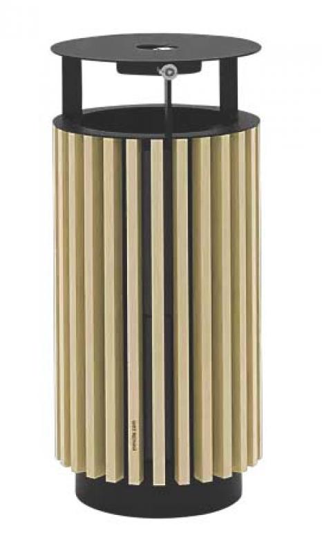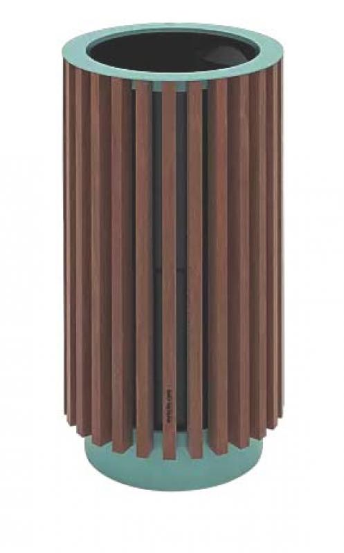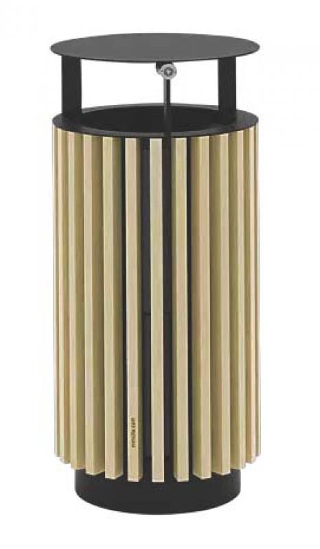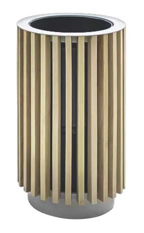 Konstrukcija koša v jekleni pločevini in aluminiju, z lesenimi letvami.