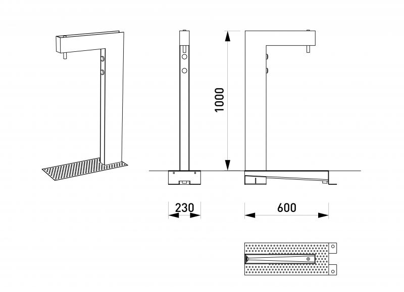 Konstrukcija: Iz jeklene pločevine z aluminijasto drenažno talno rešetko. Površina / barva: Vsi jekleni deli cinkani in prašno barvani v standardnih RAL barvah. Pritrjevanje: Za privijačenje. Napeljava: Potreben je jašek z ventilom.