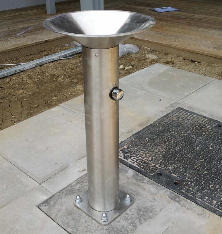 Konstrukcija: Iz nerjaveče pločevine. Površina / barva: Nerjaveče jeklo. Pritrjevanje: Za privijačenje. Napeljava: Pipa z reducirnim ventilom, odtok. Potreben je jašek z ventilom.