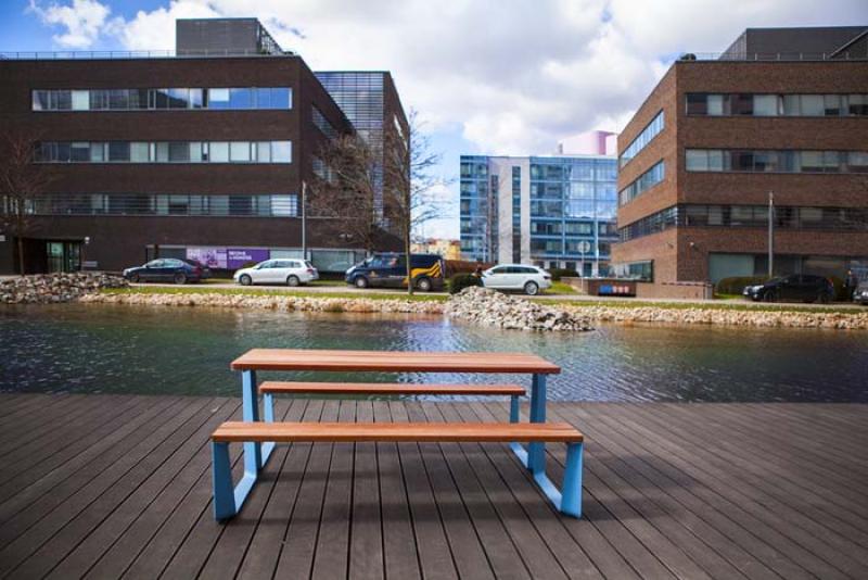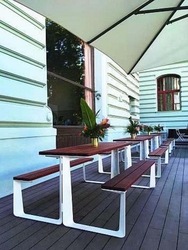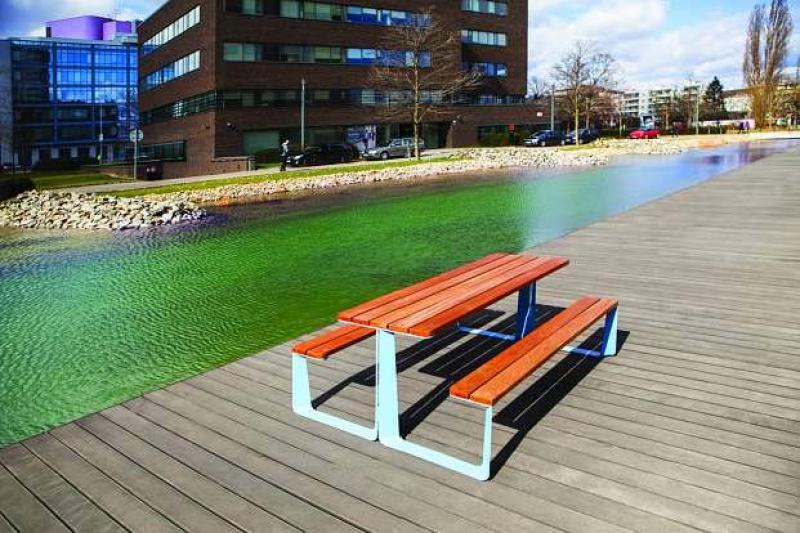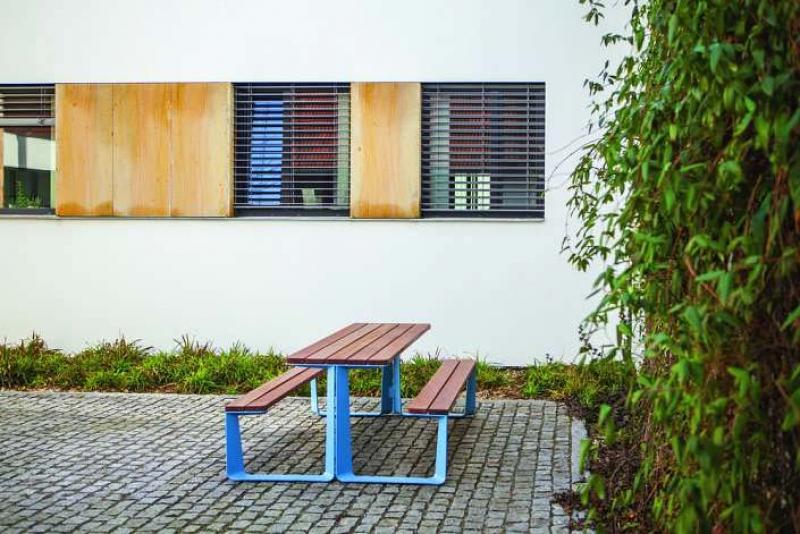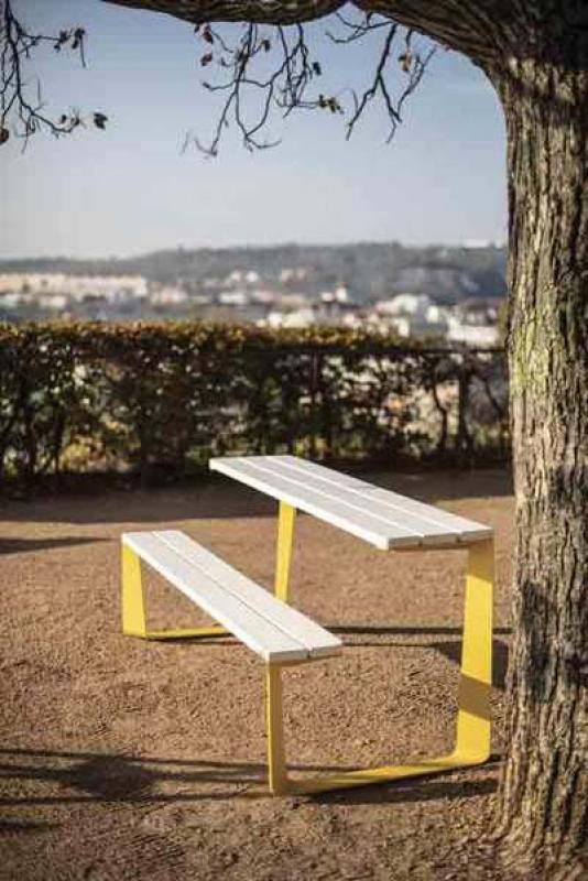 Miza in klopi iz jeklene pločevine.