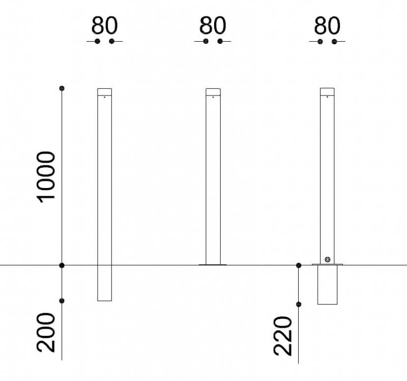 Intervencijski stebriček v talnega tulcu, za vgrajevanje v beton globina 500 mm, vgradna globina 200 mm.