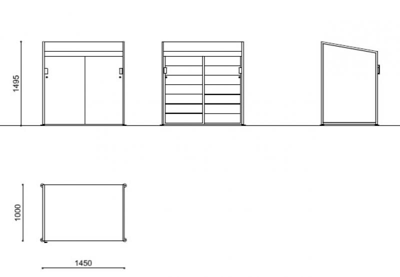 Zabojnika z okvirjem iz jeklene pločevine, s poševnim pokrovom, ki preprečuje odlaganje odpadkov in drsna vrata iz jeklene pločevine. Različica CLEAN 150 lahko sprejme do dva 120 ali 240 litrska zabojnika. Vsi kovinski deli so pocinkani in prašno barvani. Vse pritrditve so iz nerjavečega jekla. Pripravljen z nastavljivimi izravnalnimi nogami, ki se lahko uporabljajo samostoječe ali so pritrjeni na primeren tlak.