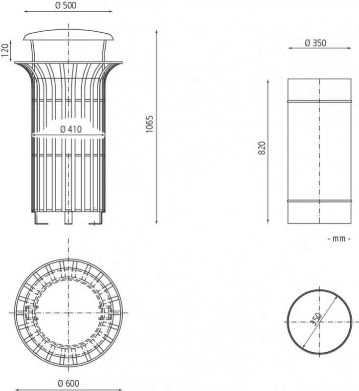 Korpus iz oblikovanih ploščatih jeklenih profilov,debeline 10 mm in okroglim varjenim jeklenim obročem.