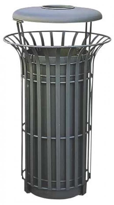 Brez zaklepa. Z verigo zavarovano držalo za vreče, za praznjenje je potrebno odstraniti posodo.