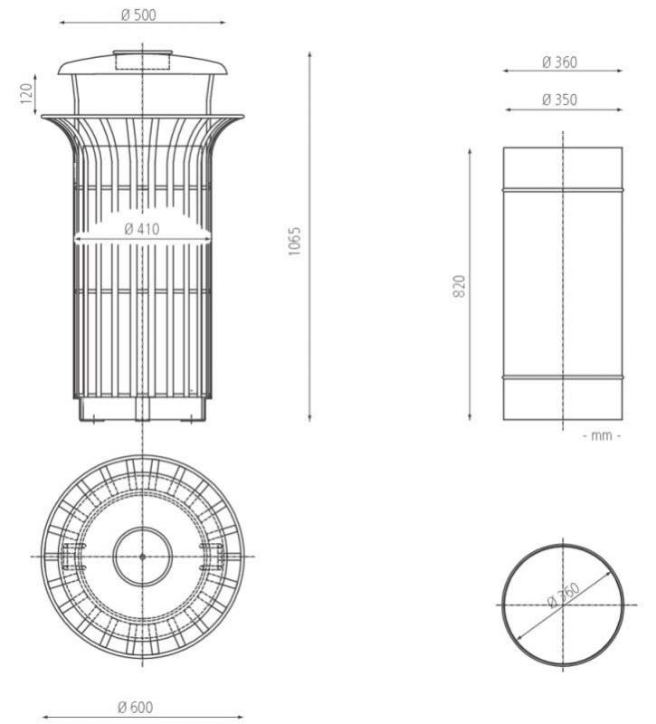 Korpus iz oblikovanih ploščatih jeklenih profilov,debeline 10 mm in okroglim varjenim jeklenim obročem.