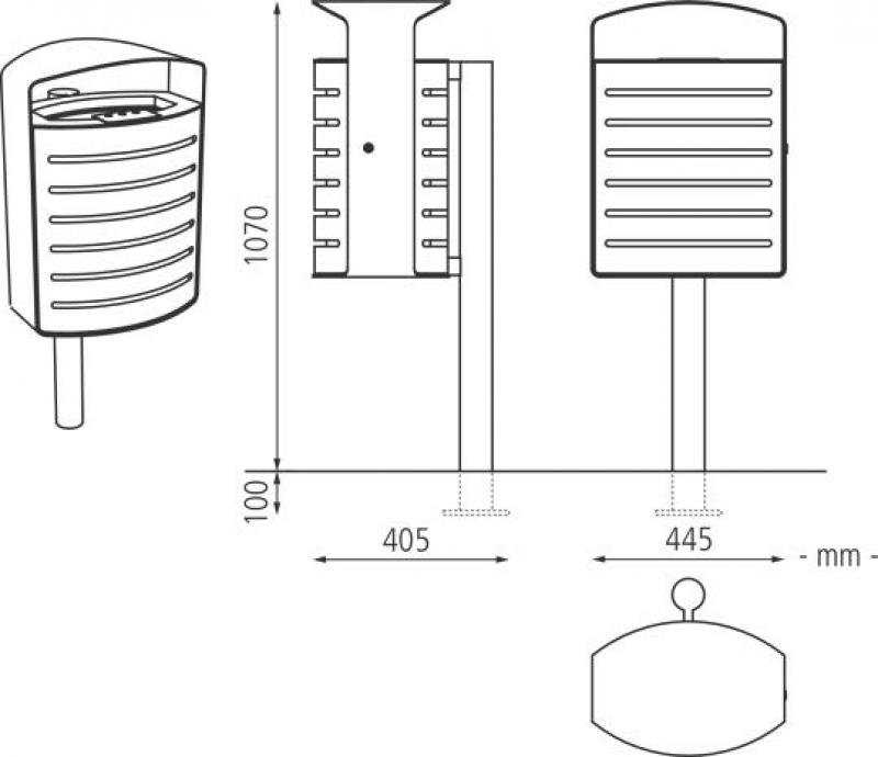 V celoti jeklena konstrukcija, zaščitna strehica, s ali brez pepelnika. Z notranjo cinkano posodo.