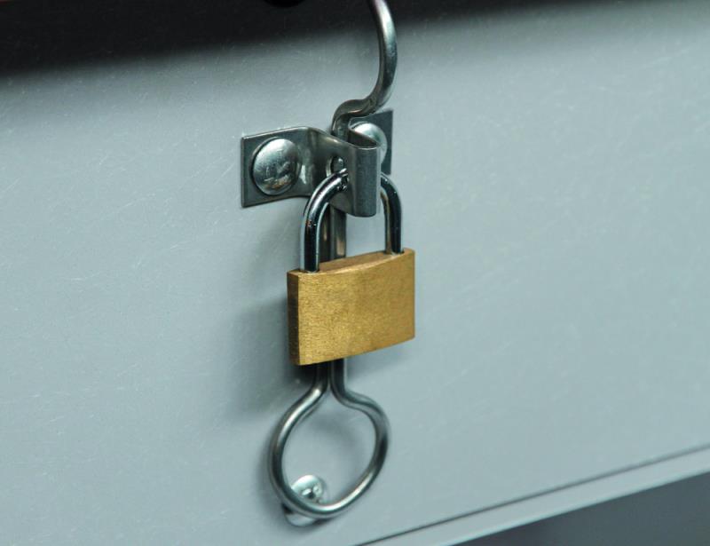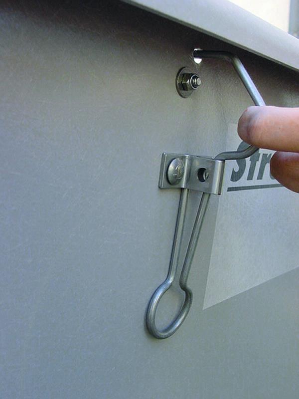 Z vzmetno kljucavnico iz legiranega jekla, samozaklepna za lažje odklepanje iz notranje ali zunanje strani.