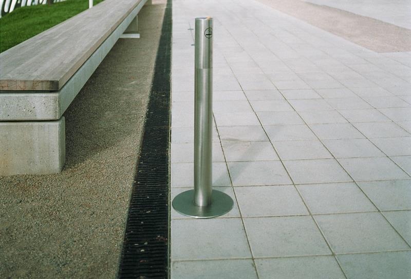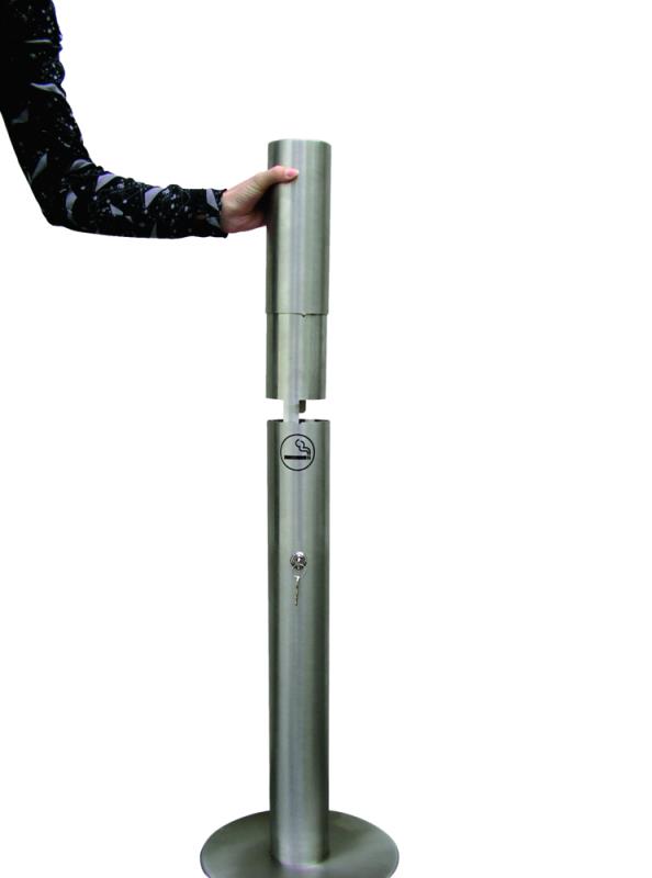 Pepelnik iz V2A - legiranega jekla. Spodnji del prašno barvan. Talna plošca (premer 150 mm), pritrditveni material vkljucen. Vzdrževanje / praznjenje: odpiranje zgornjega dela s sredinsko trikotno kljucavnico, za praznjenje in odstranjevanje. Dobava vkljucuje dva kljuca.