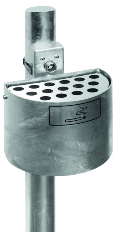 Sito iz legiranega jekla. Pepelnik brez odtocnih odprtin. Dobava vkljucuje letev za stensko izvedbo ali izvedbo s stebrickom. Pritrditveni material in standardni stebricek niso vkljuceni v dobavo. Vzdrževanje / praznjenje:s trikotno kljucavnico na letvi. Dobava vkljucuje en trikotni kljuc. Pepelnik popolnoma snemljiv. Dobava vkljucuje nalepko "cigareta".