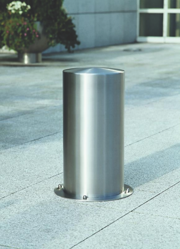 Premer: Ø 306 mm Konstrukcija: Zelo stabilen stebričk iz legirane jeklene cevi s prirobnico. Površina: Legirano jeklo V2A, brušeno. Pritrjevanje: Vijačenje na temelj ali pšrimeren tlak. Pritrditveni material ni priložen.