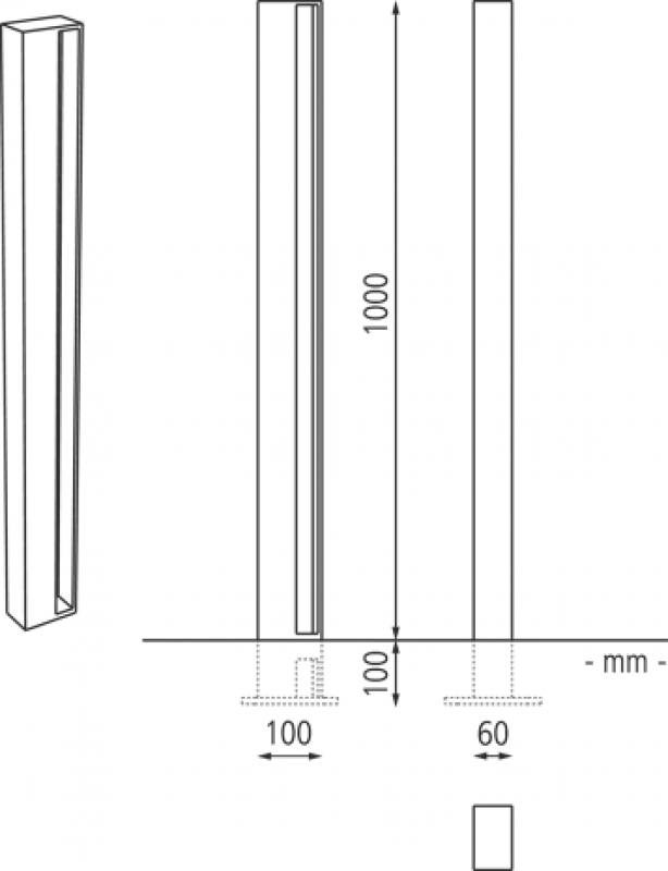 Stebriček iz jekla, z odprtinami na zadnji in sprednji strani.