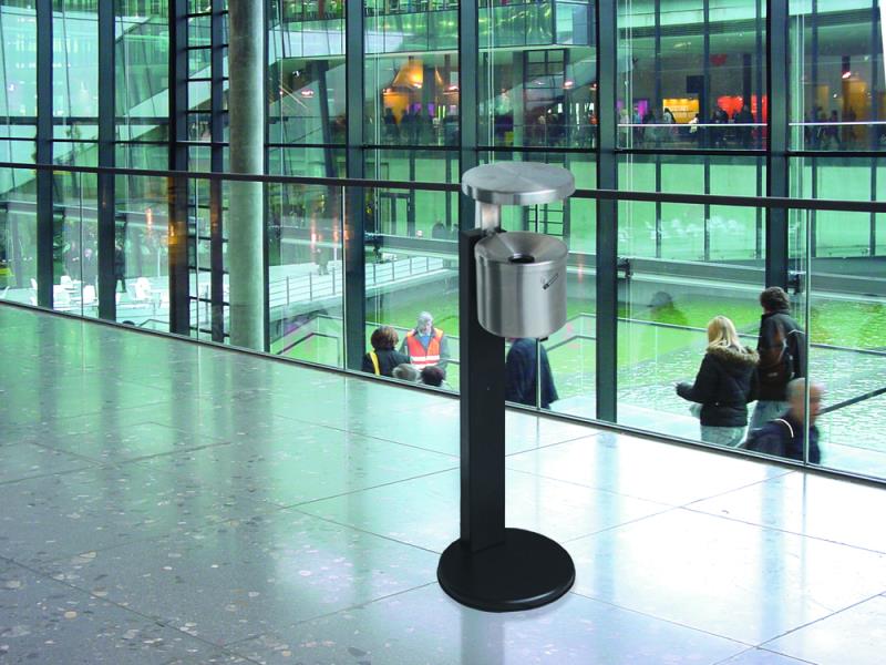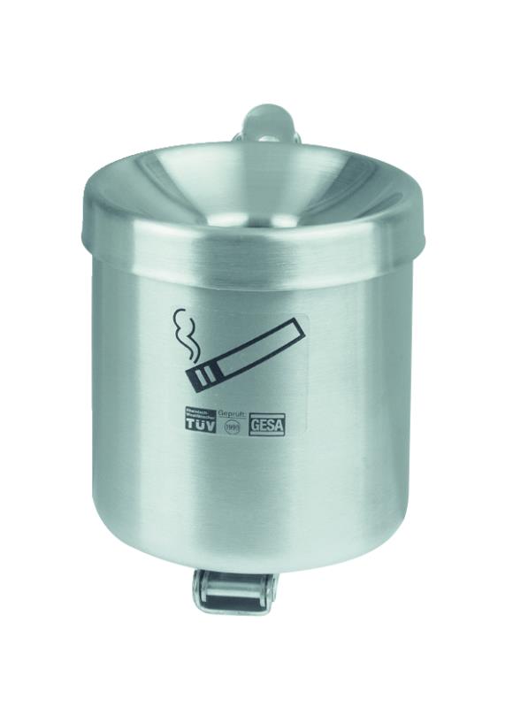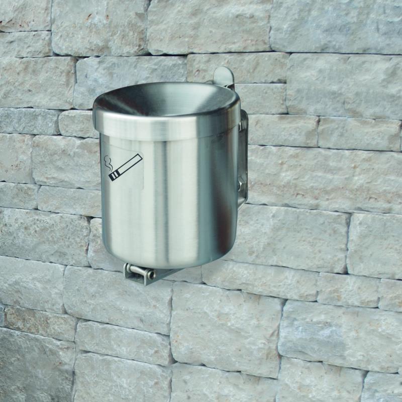 Konstrukcija: Stenski papelnik iz legiranega jekla. Cigaretni ogorki padajo neposredno v posodo. Dobavljivo tudi z zašcitno streho iz legiranega jekla (glej dodatki). Površina: Legirano jeklo V2A, brušeno. Pritrjevanje: Pritrjevanje na steno z držalom iz legiranega jekla. Možna tudi izvedba za prosto postavitev s crnim nožnim nastavkom (glej dodatki). Vzdrževanje / praznjenje: Brez zaklepa. S prakticnim prekucnim sistemom.