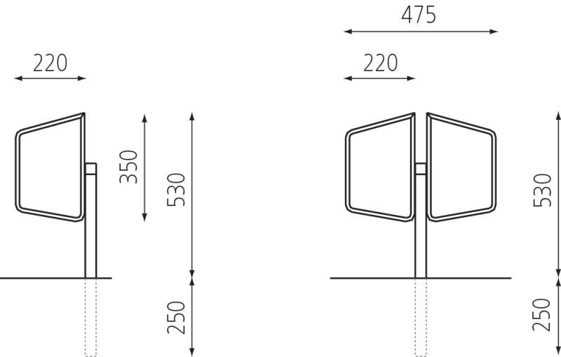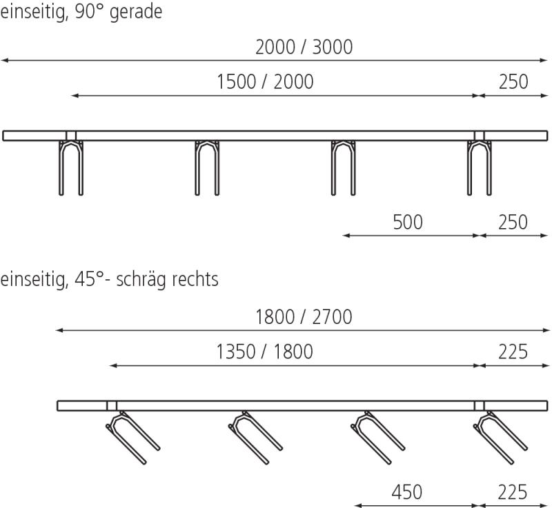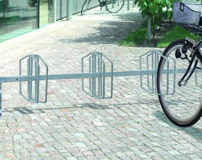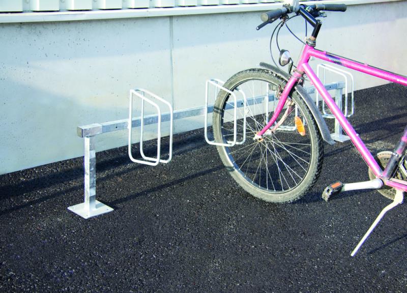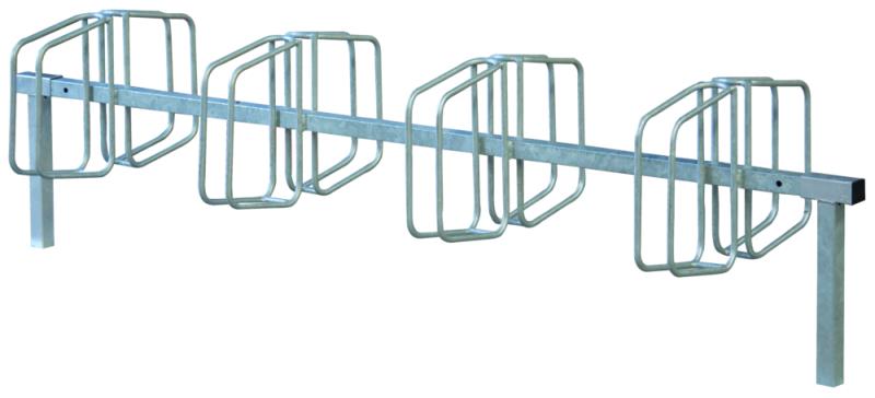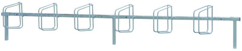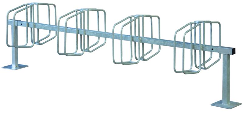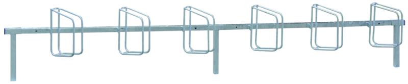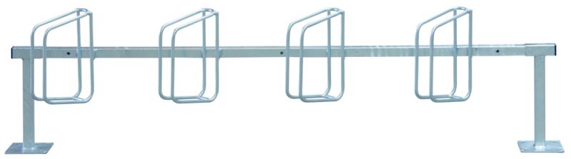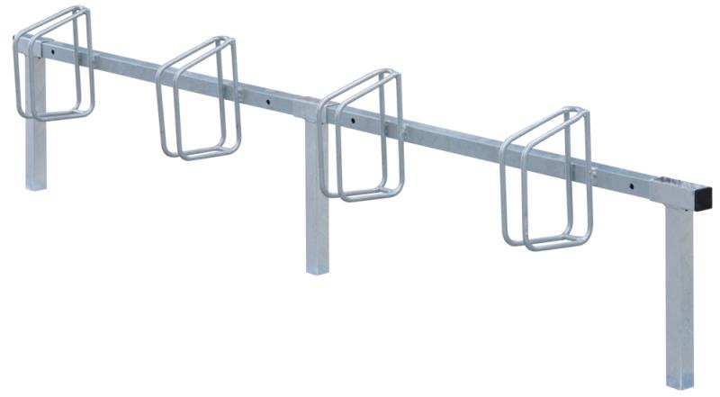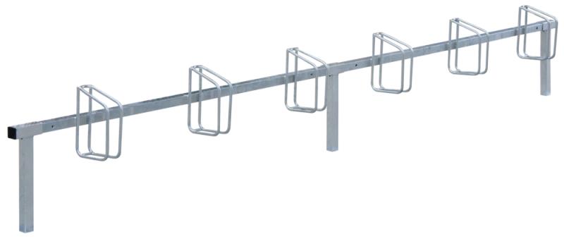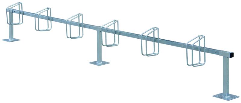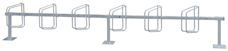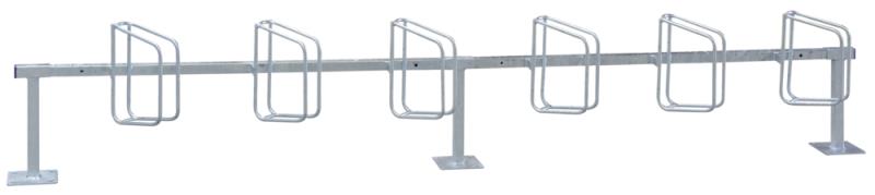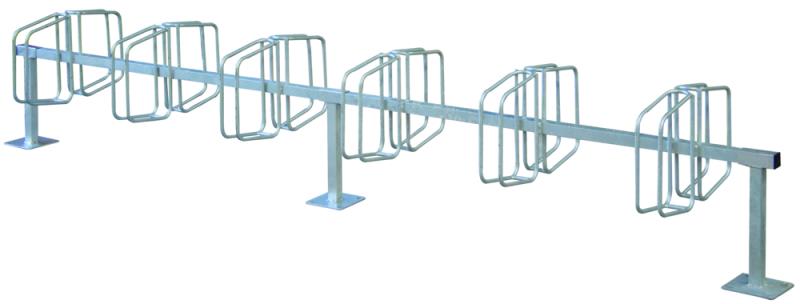 Osnovni okvir iz jekla, kvadratni cevni profil 35 x 35 mm. Držala iz cevi premera 12 mm, navarjeno na nosilni okvir. 12 mestno stojalo je sestavljeno iz 2 osnovnih ogrodij in 6 nosilcev. Širina kolesa 55 mm. Razmak med kolesi 500 mm. Priporocljiva vgradna globina 250 mm.