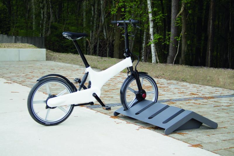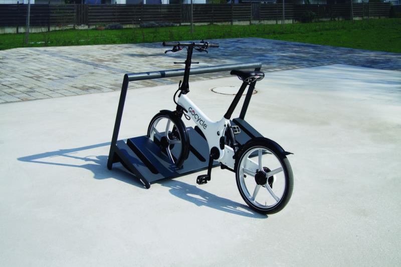 Stojalo za 6 koles pri dvostranskem parkiranju. Iz jekelne pločevine.