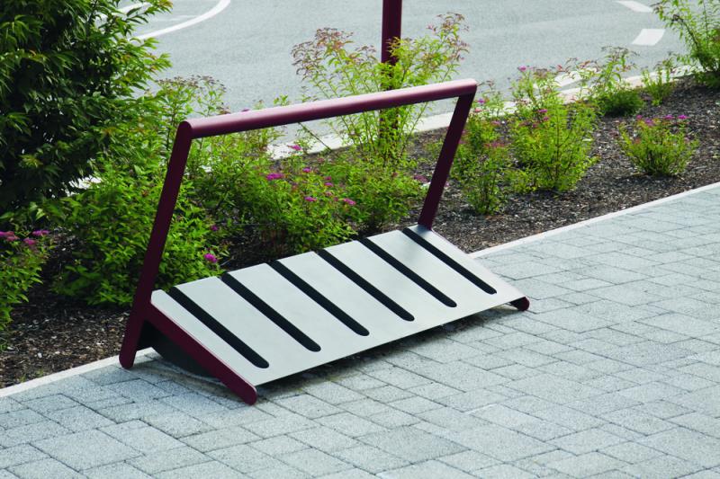 Stojalo za 4 kolesa pri dvostranskem parkiranju. Iz jekelne pločevine.