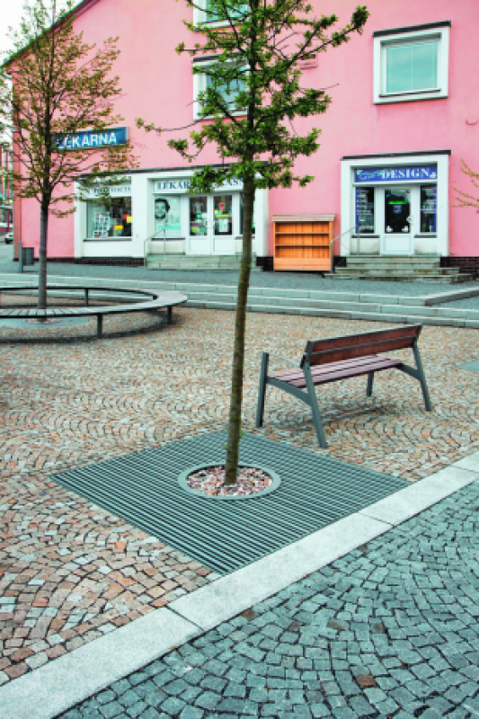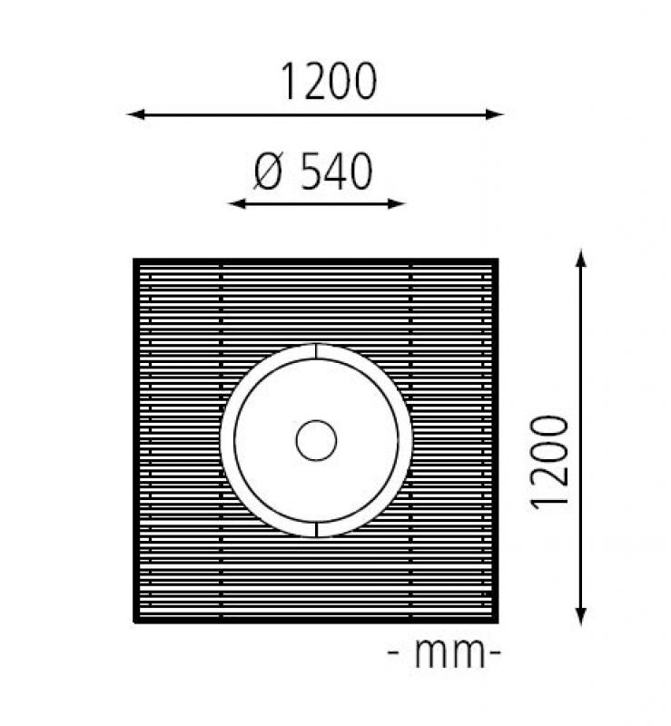 Konstrukcija: Drevesna rešetka iz jeklene pločevine, kvadratna. Pvršina / barva: Konstrukcija standardno vroče cinkana. Pritrjevanje: Okvir se vbetonira.