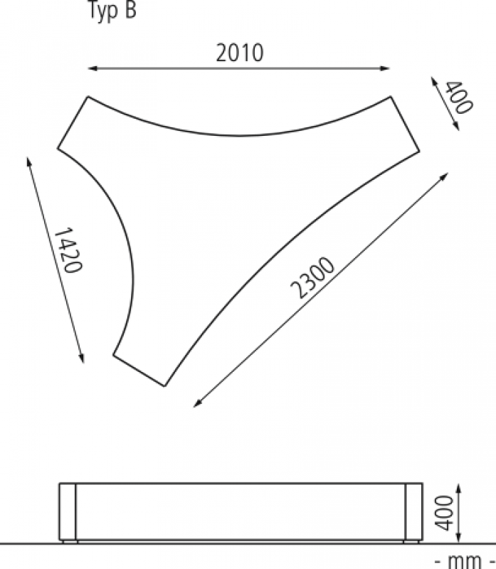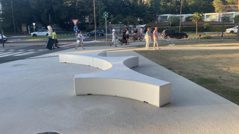 Konstrukcija: Klop iz vidnega betona z različnimi premazi. Vsi robovi so zaobljeni. Površina / barva: S prozornim premazom, odpornim na vodo in vremenske vplive.