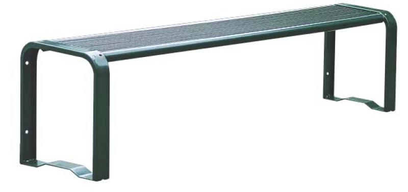 Klop v celoti iz jekla z naslonom za roke. Sedalna površina in naslon iz kovinskih palic 8 mm, okrogli profil.