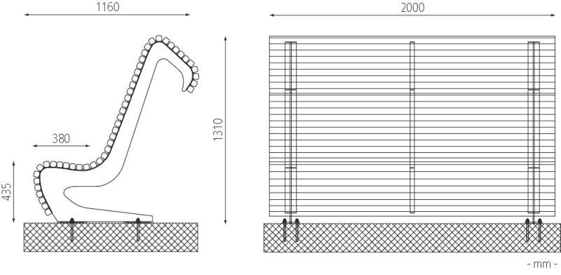 Sedalna površina in hrbtni naslon iz lesenih letev. Na izbiro z ali brez križnih spojev.