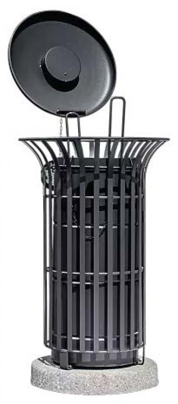 Brez zaklepa. Z verigo zavarovano držalo za vreče, za praznjenje je potrebno odstraniti posodo.