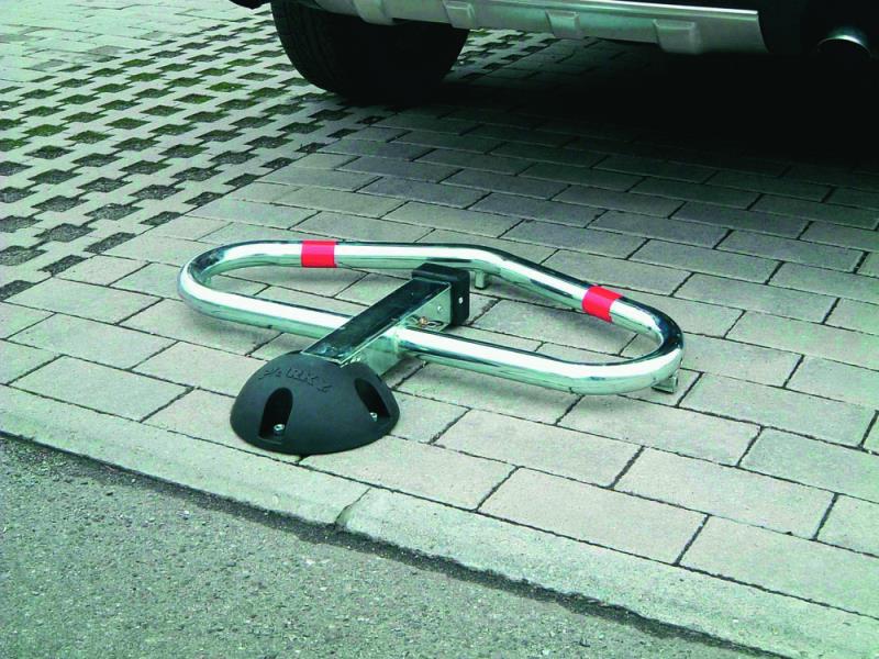 Parkirna zapora iz jekla, cevni profil premera 40 mm, zaščita iz umetne mase (poliamid), ki šciti gume pri naletu.
