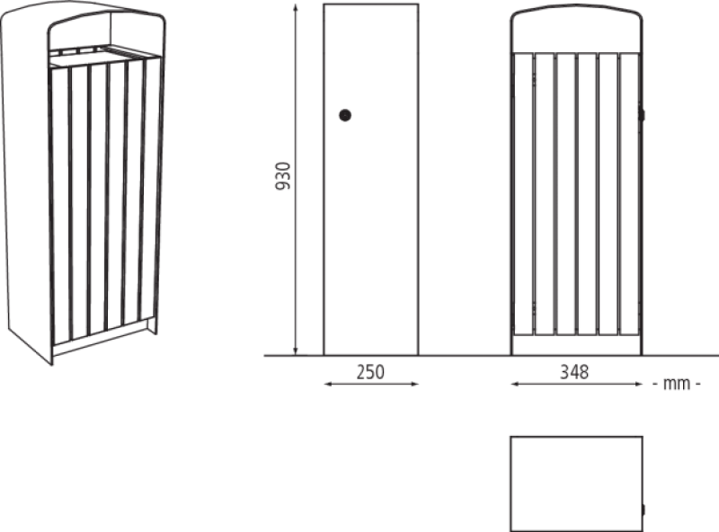 Konstrukcija koša v jekleni pločevini, z lesenimi letvami.