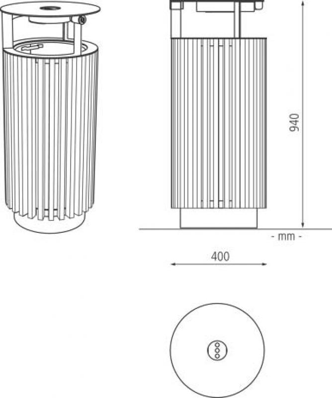 Konstrukcija koša v jekleni pločevini in aluminiju, z lesenimi letvami.