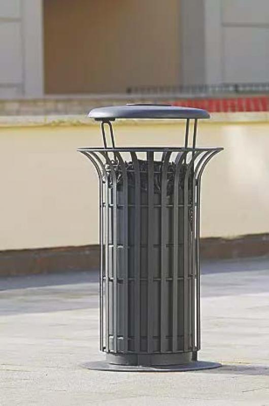 Brez zaklepa. Z verigo zavarovano držalo za vreče, za praznjenje je potrebno odstraniti posodo.