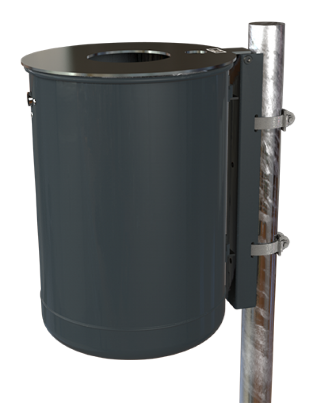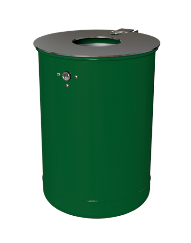 Koš iz jeklene pločevine, polna ali perforirana. Izvedba s pepelnikom ali brez.