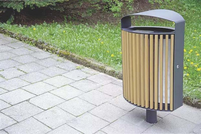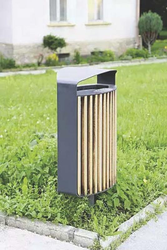 Jeklena konstrukcija z lesenimi letvami, zaščitna strehica, s ali brez pepelnika. Z notranjo cinkano posodo.
