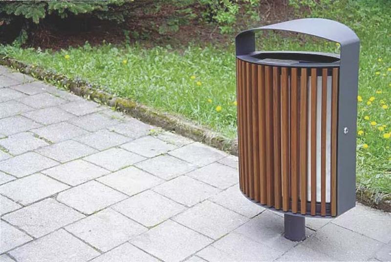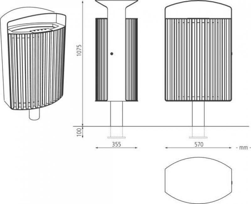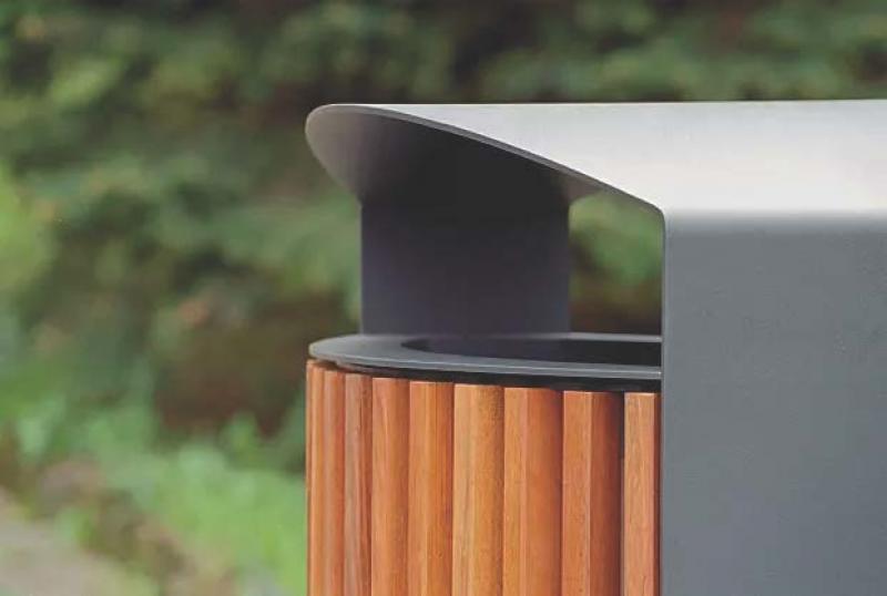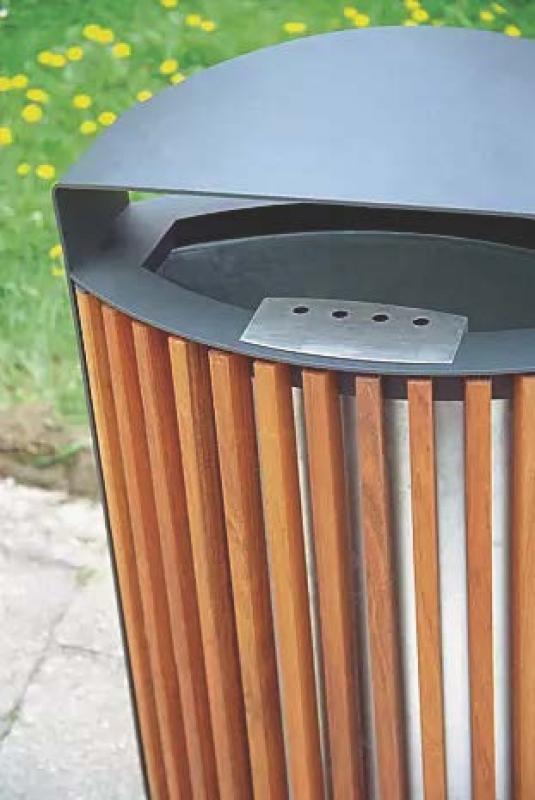 Jeklena konstrukcija z lesenimi letvami, zaščitna strehica, s ali brez pepelnika. Z notranjo cinkano posodo.